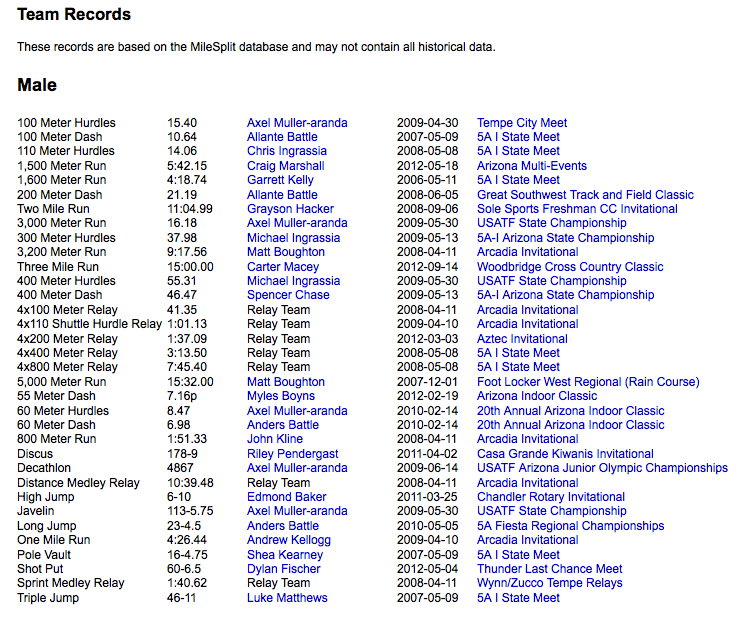 - Sometimes an athlete participates in a USATF/XC meet or a meet where the athlete has to compete under a name other than the high school. When the results are uploaded every name or similar name in the country will show up during the upload process. The only way to match the marks to the athlete is by name and graduation year. Even then the name may not show up or there may be more than one name with the same graduation year. (A quick email to the webmaster by the parent or coach would help with making sure the athlete and the marks match up.)